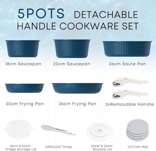 RIOVARM Zestaw garnków i patelni indukcyjnych ze zdejmowanymi uchwytami