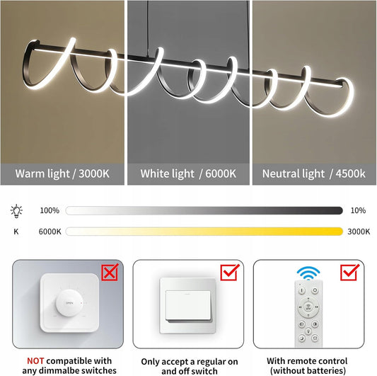 spiralna lampa wisząca, kreatywna lampa wisząca LED do kuchni