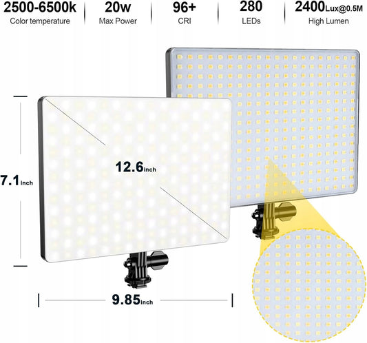 DAZZNE D30 LED ŚWIATŁO FOTOGRAFICZNE 2 SZTUKI NA STOJAKU CIĄGŁE 2500-6500K