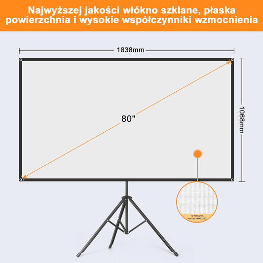 Ekran Projekcyjny 80", 4K HD 16:9 Ekran projekcyjny ze Stojakiem