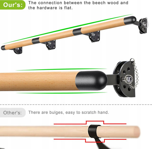 ścienny tradycyjny system drążków baletowych z litego drewna