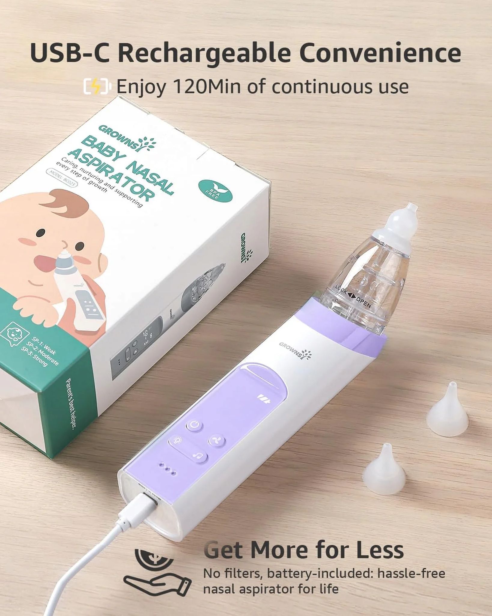 - BEZPROBLEMOWE USUWANIE: Aspirator do nosa dla niemowląt GROWNSY posiada 3 regulowane poziomy ssania dla indywidualnego komfortu oraz szybko i skutecznie usuwa wszelkiego rodzaju suche i wilgotne odchody. To niezbędny dodatek do listy rzeczy do pielęgnacji każdego dziecka i idealne akcesorium dla świeżo upieczonych rodziców.