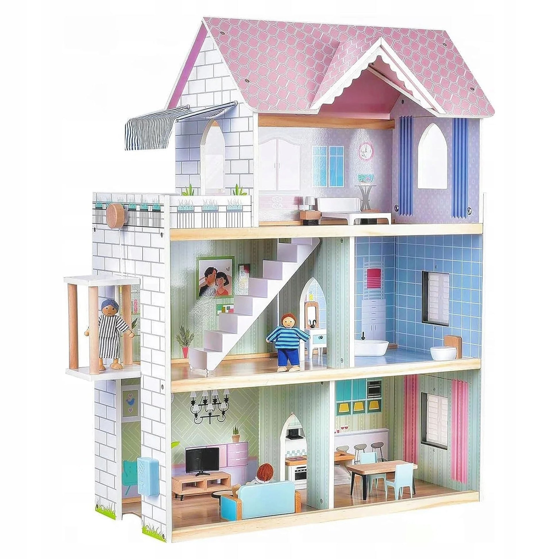 Duży domek dla lalek w kolorze różowym z zestawem mebli dla dziewczynek